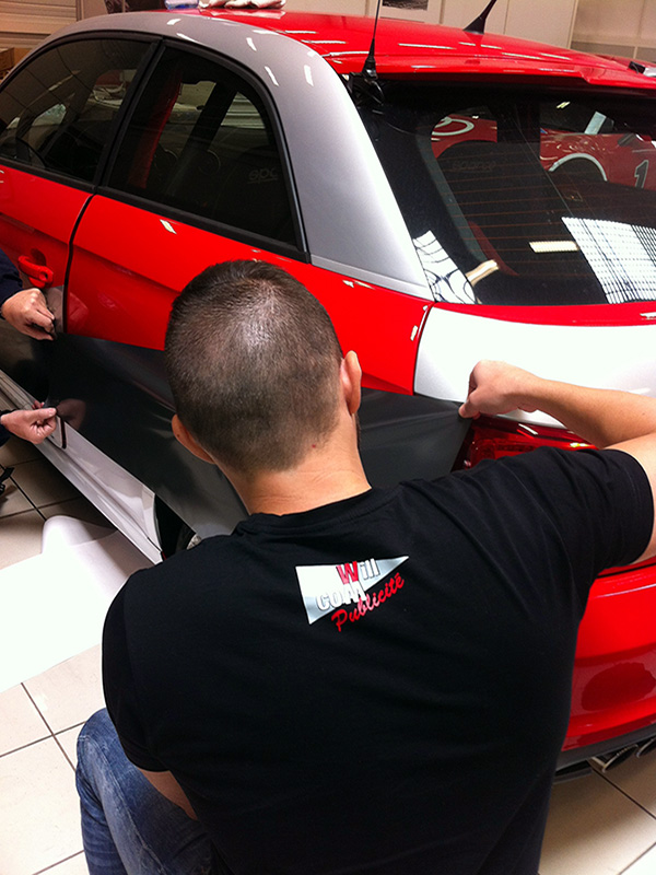 Le total covering consiste à recouvrir votre véhicule d’un adhésif, partiellement ou en totalité, ce qui permet d’en changer le look mais aussi d’en protéger la peinture d’origine des agressions extérieures.